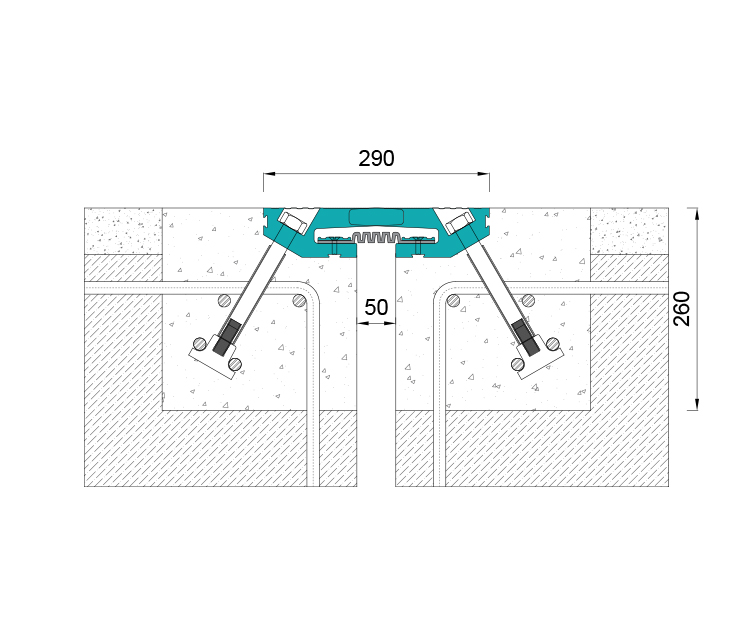 The sealed rubber is strong against grease, oil, chemical and resistant to UV rays, land and salt. In addition, two types of rubber seals can be selected as desired in these aluminium expansion joints. This system is manufactured under the control of our qualified engineers in high quality conditions in our factory. Arfen BE aluminium series bridge expansion joints guarantee a long-term solution to corrosion. Expansion joints of different sizes are connected to the superstructure by mounting on both sides using corrosion-resistant galvanized anchor bolts and chemical anchors suitable for absorbing elastic reactions, mechanical vibrations and other movements of the structure. M20 bolts are used in the anchorage process. Repairs and replacement of old expansion joints are very easy. Without breaking concrete you can change expansion joint.