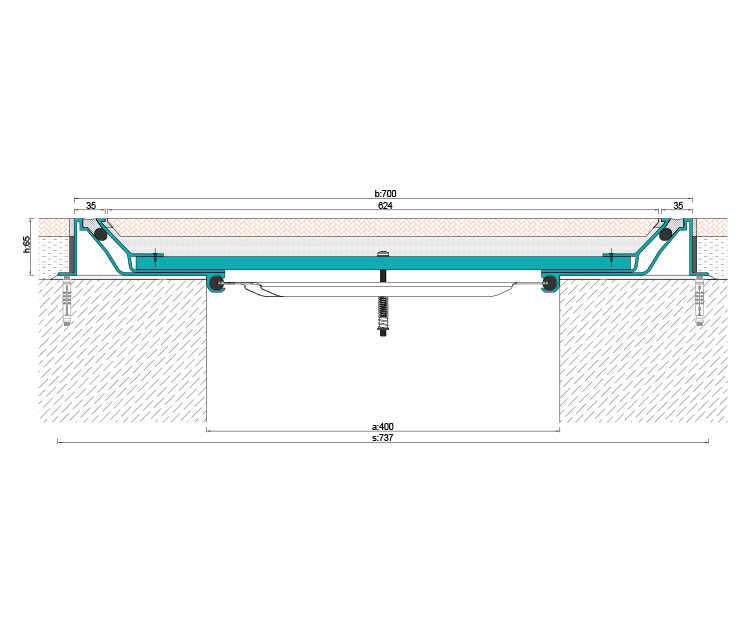 Sealant Applied, Flush Mounted Seismic Expansion Joint Floor Profile suitable for 40 cm gap with high movement capacity.
