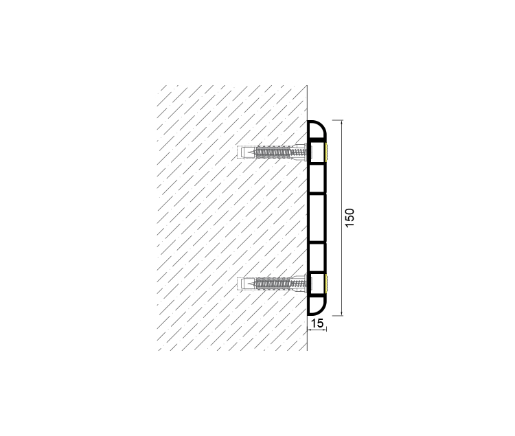 RG 150 Rubber Corner Guard System prevents deformation on walls and columns. 150mm width and 20mm depth.