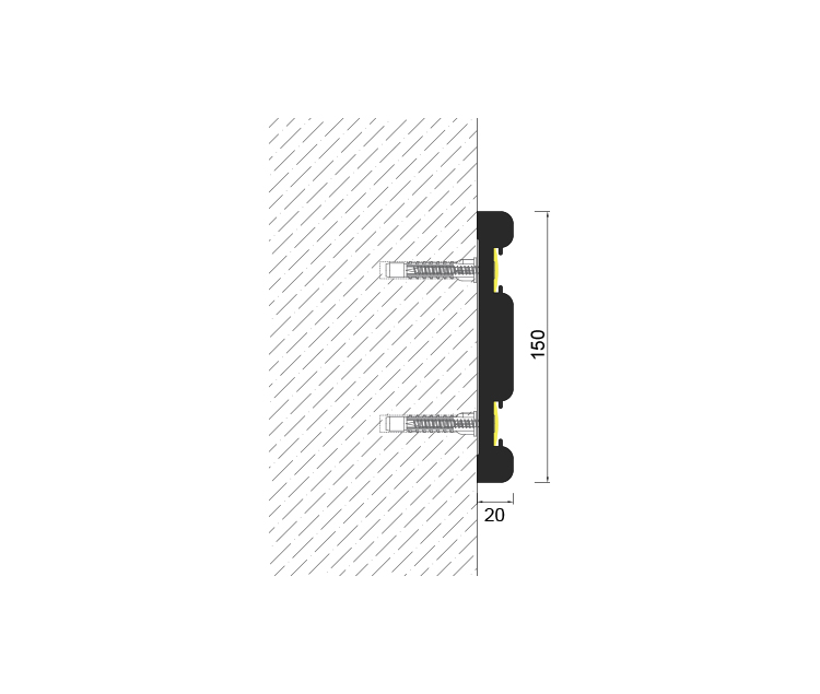 150 mm width 20 mm depth TPE wall protection system; It is used to